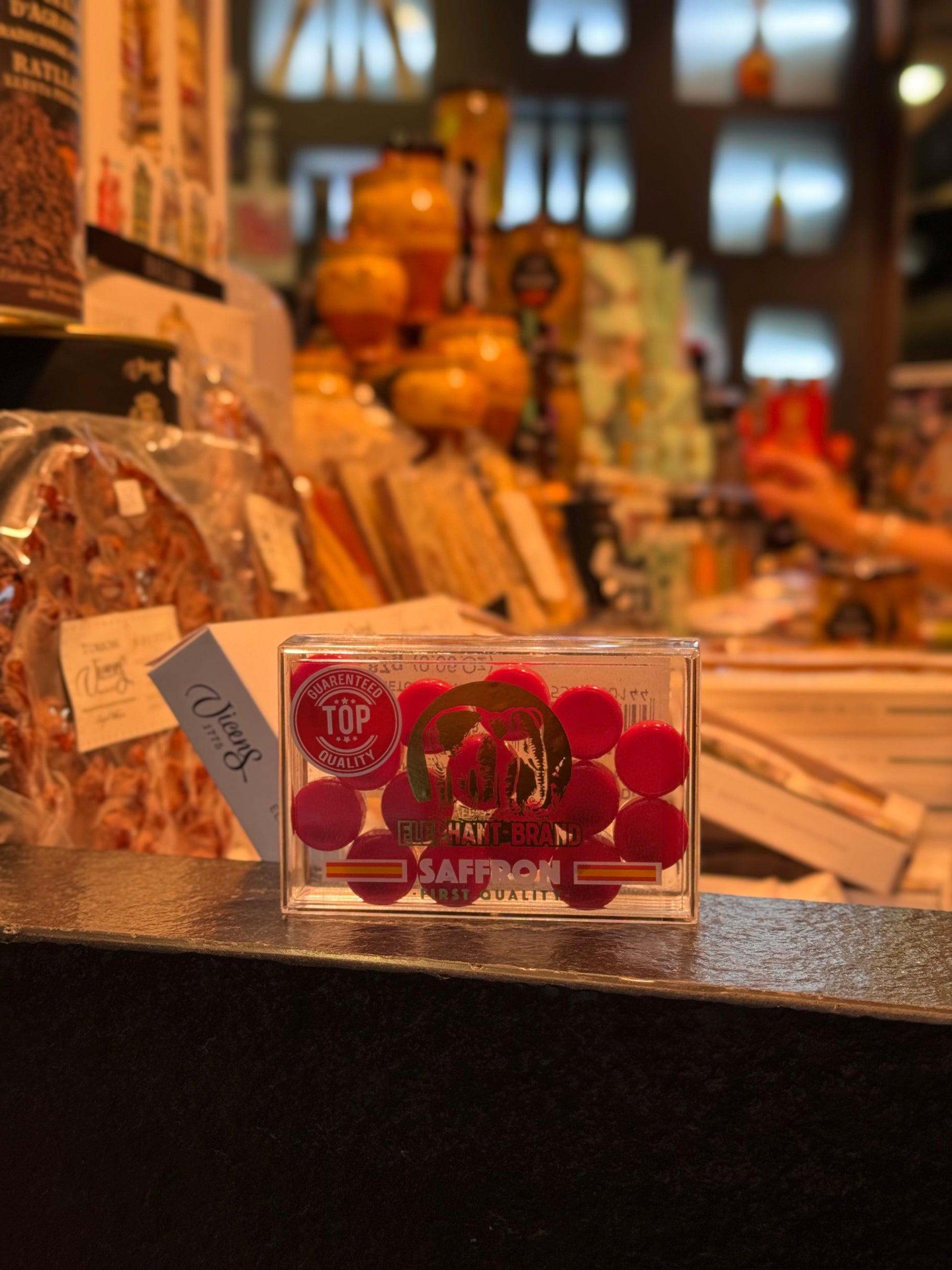 Caja de azafrán en polvo de la marca Elephant Brand con quince cápsulas de 0.125g cada una (azafranes Alberola de Novelda, España).